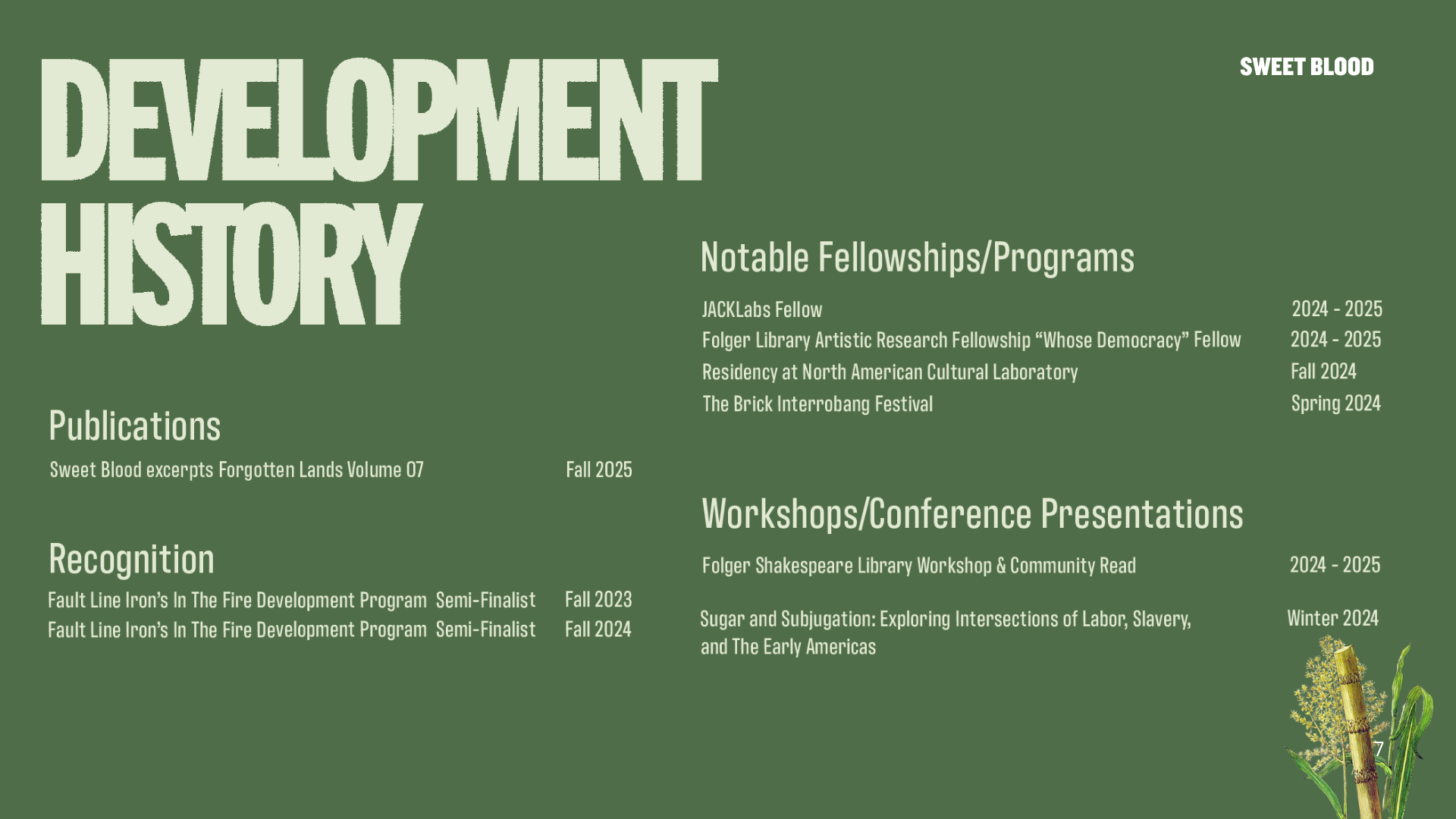 Synopsis: Ris, Tanama, and Caona live in relative peace in the mountains of Jamaica circa 1727 where they steward the land that sugarcane grows on and care for their sick father. Tanama trades sugar and other goods down at the port dreams of a life outside of their land while Caona wants to keep the legacy of their family alive and Ris just wants to keep her sisters safe in a world that is rapidly changing due to colonization. When their land and their bodies become contested as potential ways to win the war against encroaching British invaders these sisters must decide what resistance looks for free Black women in the face of impossible odds and what they are willing to do, give, and sacrifice for their freedom.